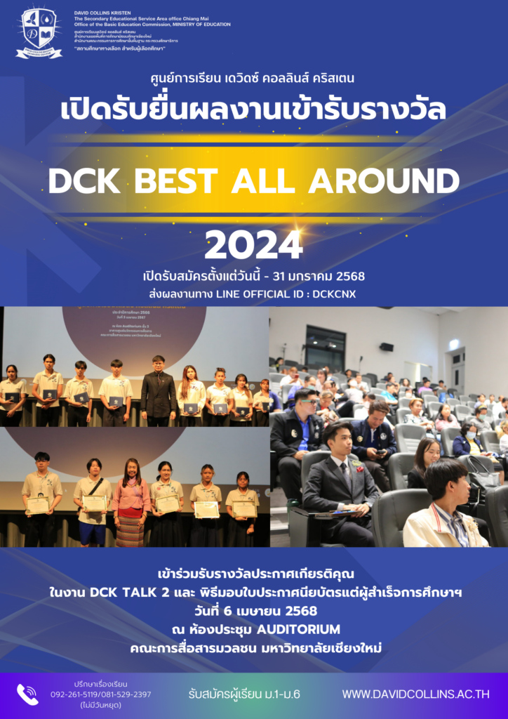 ศูนย์การเรียนเดวิดซ์ คอลลินส์ คริสเตน เปิดรับสมัครผลงาน เพื่อเสนอชื่อเข้ารับรางวัล DCK BEST ALL AROUND 2024 ตั้งแต่วันนี้ – 31 มกราคม 2568
