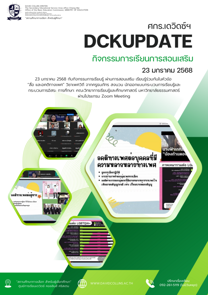 23 มกราคม 2568 กับกิจกรรมการเรียนรู้ ผ่านการสอนเสริม เรียนรู้ร่วมกันในหัวข้อ “สื่อ และอคติทางเพศ” วิชาเพศวิถี จากครูธนภัทร สงนวน นักออกแบบกระบวนการเรียนรู้และกระบวนการอิสระ การศึกษา: คณะวิทยาการเรียนรู้และศึกษาศาสตร์ มหาวิทยาลัยธรรมศาสตร์ ผ่านโปรแกรม Zoom Meeting