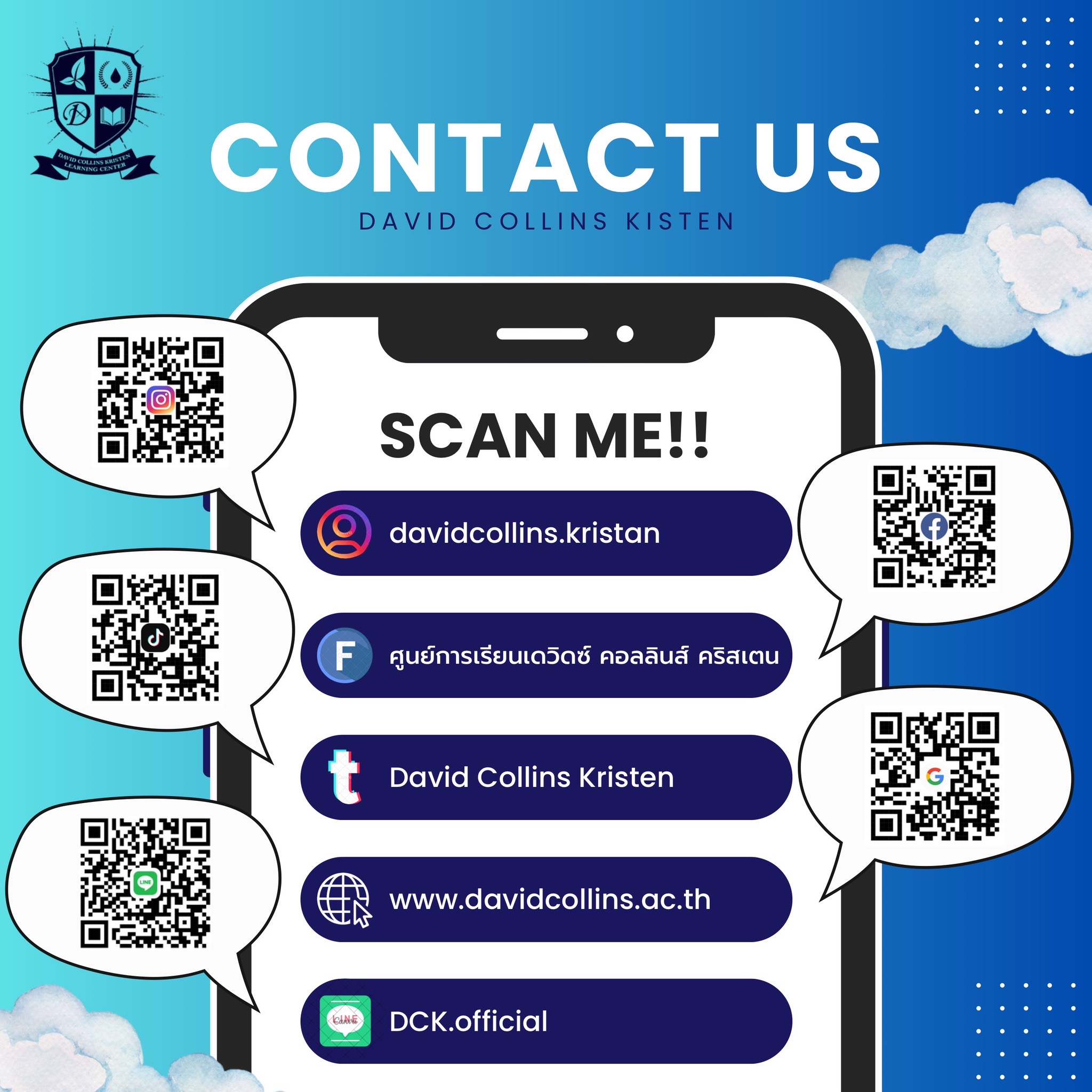 ช่องทางการติดต่อ/สื่อสาร ศูนย์การเรียนเดวิดซ์ คอลลินส์ คริสเตน