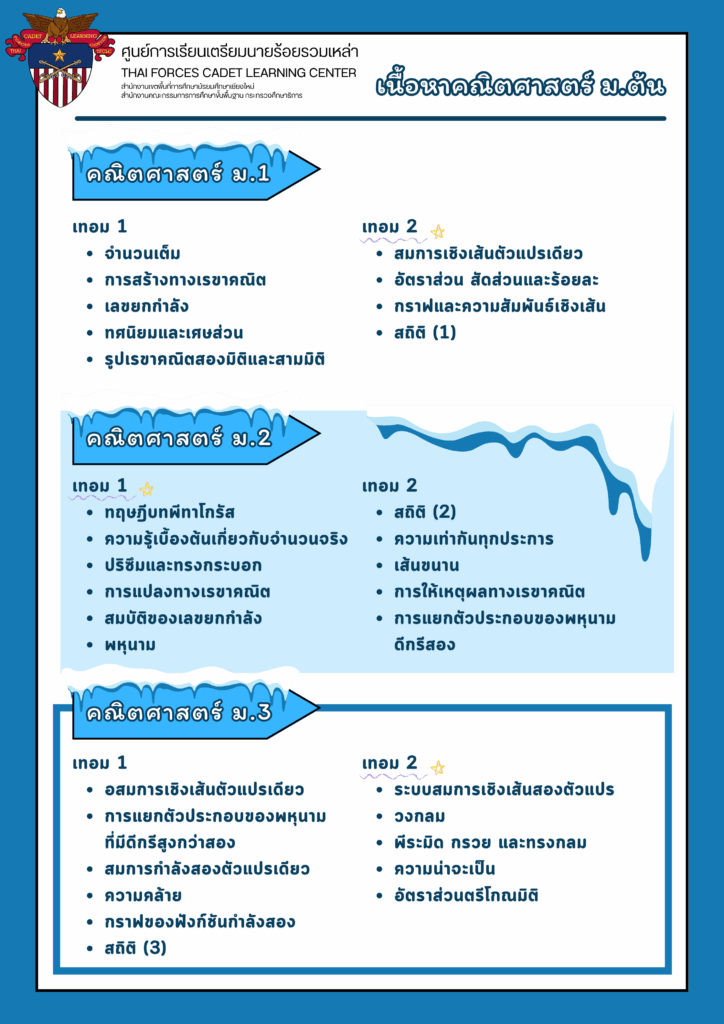 เนื้อหาคณิตศาสตร์ ม.ต้น ศูนย์การเรียนเตรียมนายร้อยรวมเหล่า